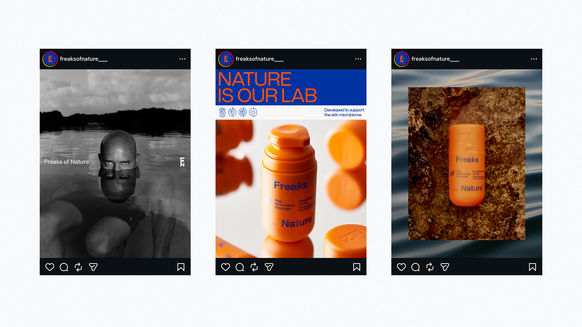 In developing the brand identity for Freaks of Nature, we started with a simple truth: we are at our best in nature. But there’s a sad irony – the same places that feed our souls often take a toll on our skin.